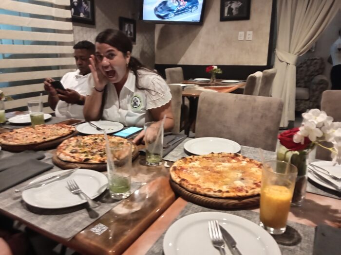 Wenige Tage später folgt mein eigener Geburtstag. Und hier gilt: Nicht das Geburtstagskind feiert – sondern, es wird das Geburtstagskind gefeiert. Meine Aufgabe ist es also lediglich Wünsche auszusprechen – z.b. mit wem ich diesen Tag verbringen möchte – um den Rest kümmern sich Freunde und Familie. In meinem Fall: Christel und Jacinta. Sie beginnen den Tag mit einem ersten, deutschen Ständchen zuhause. Diesem schließen sich noch viele weitere über den ganzen Tag verteilt an. Am Abend dann die Überraschung: Es geht mit all meinen neu gewonnenen Freundinnen und ein paar unserer Kolleg*innen zum Italiener! Bei Pizza, frisch gepressten Säften, Lachen und guten Gesprächen verbringen wir einen tollen Abend.