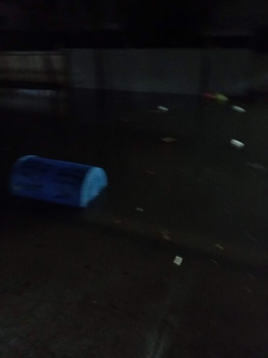 Da zieht nämlich der spätere Hurrikan Melissa durch die Karibik und macht auch vor unserem Haus nicht halt. Es regnet wie aus Kübeln und hört gar nicht mehr auf. Innerhalb kürzester Zeit steigt der Pegel in unserer Straße. Wo sonst normal Autos fahren, verwandelt sich die Straße in eine reißende Wasserflut. Die Wassermassen drücken unser Tor aus den Schienen und so weit zurück, dass nun nicht nur der Regen, sondern auch das von den Straßen herabströmende Wasser in unseren Hof schießt und über die Kellerfenster – später auch durch den Türeingang – ins Haus gelangt.