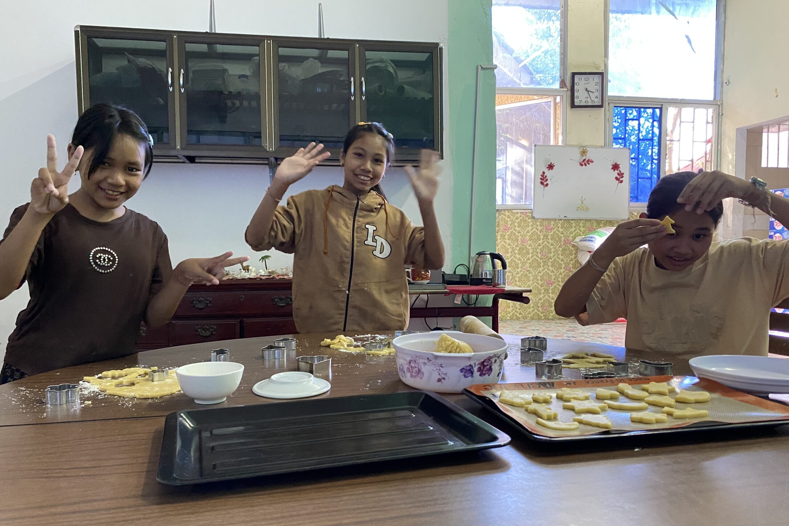 Die Weihnachtszeit ist ganz anders verlaufen als ich es von zu Hause kenne. Um trotzdem ein bisschen in Weihnachtsstimmung zu kommen, habe ich mit meinen kleinen Mädels die Küche in eine Weihnachtsbäckerei verwandelt und Plätzchen gebacken, die in den buntesten Farben verziert wurden. Und was soll ich sagen, auch in Kambodscha haben die Kinder Freude an dieser „riesengroßen Kleckerei“.